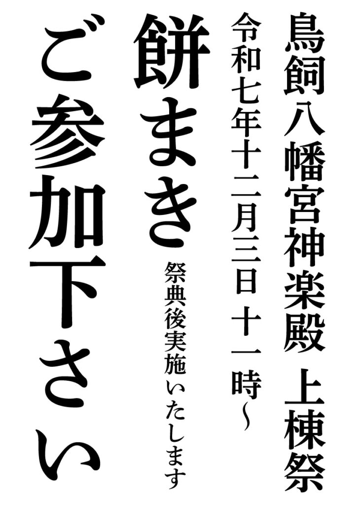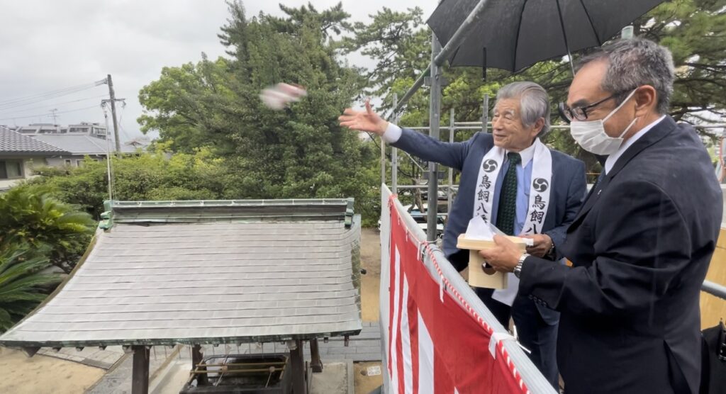 【12/3】鳥飼八幡宮神楽殿上棟式【餅まき】