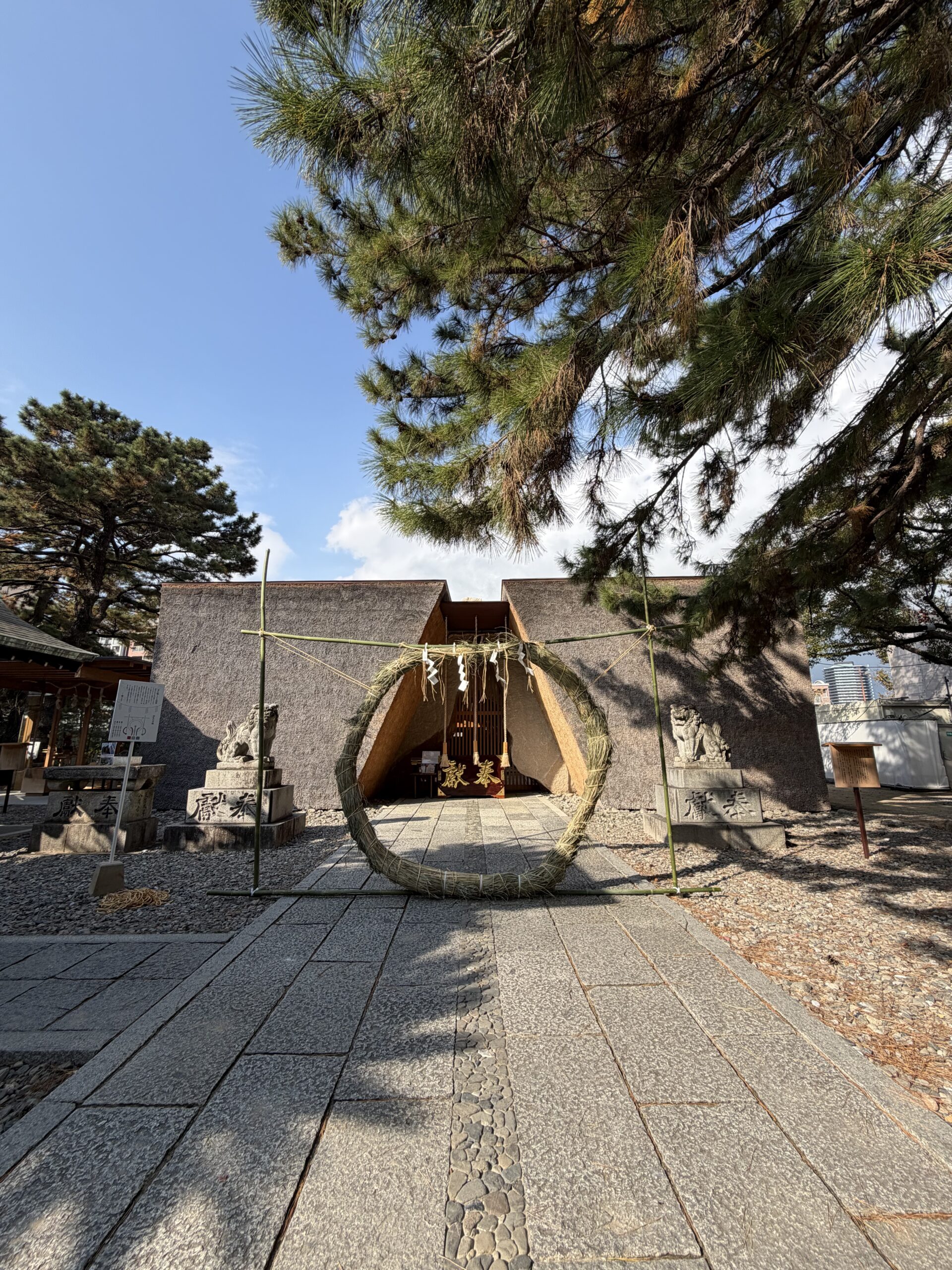 さてタイトルにもありますように、年越しの茅の輪を設置いたしました。