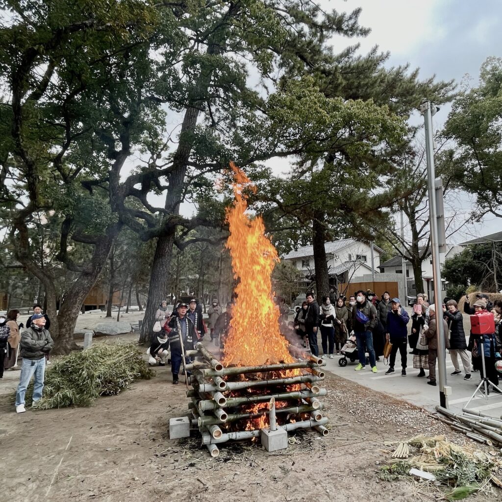 どんど焼きは校区の行事であり、当宮の行事ではありませんので、明日12日午前中以降は当宮にて正月飾りのお預かりはできません。