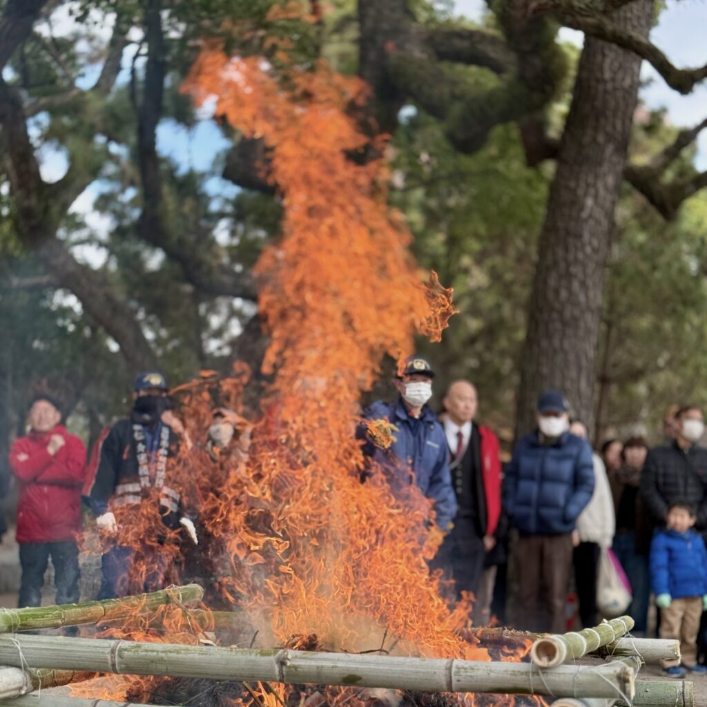 本日令和8年1月12日午前中、当宮境内にて南当仁校区のどんど焼きが行われました。