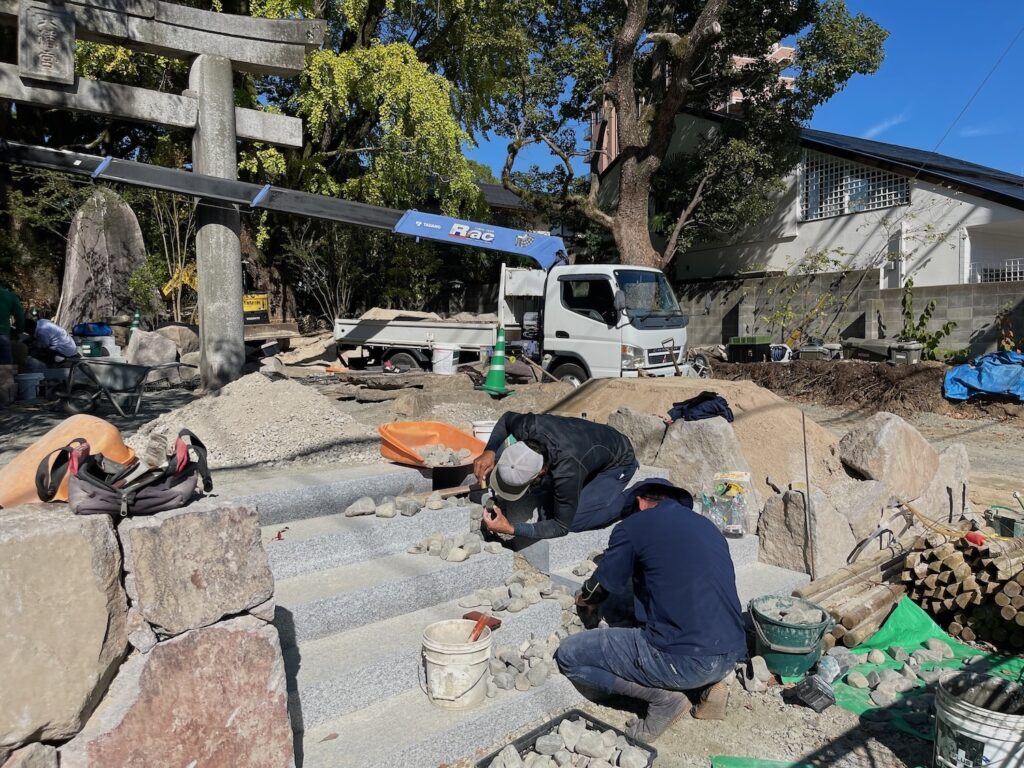 「最高の参道をつくろう!」と意気込んで造られた職人さんたちの思いのこもった参道です。