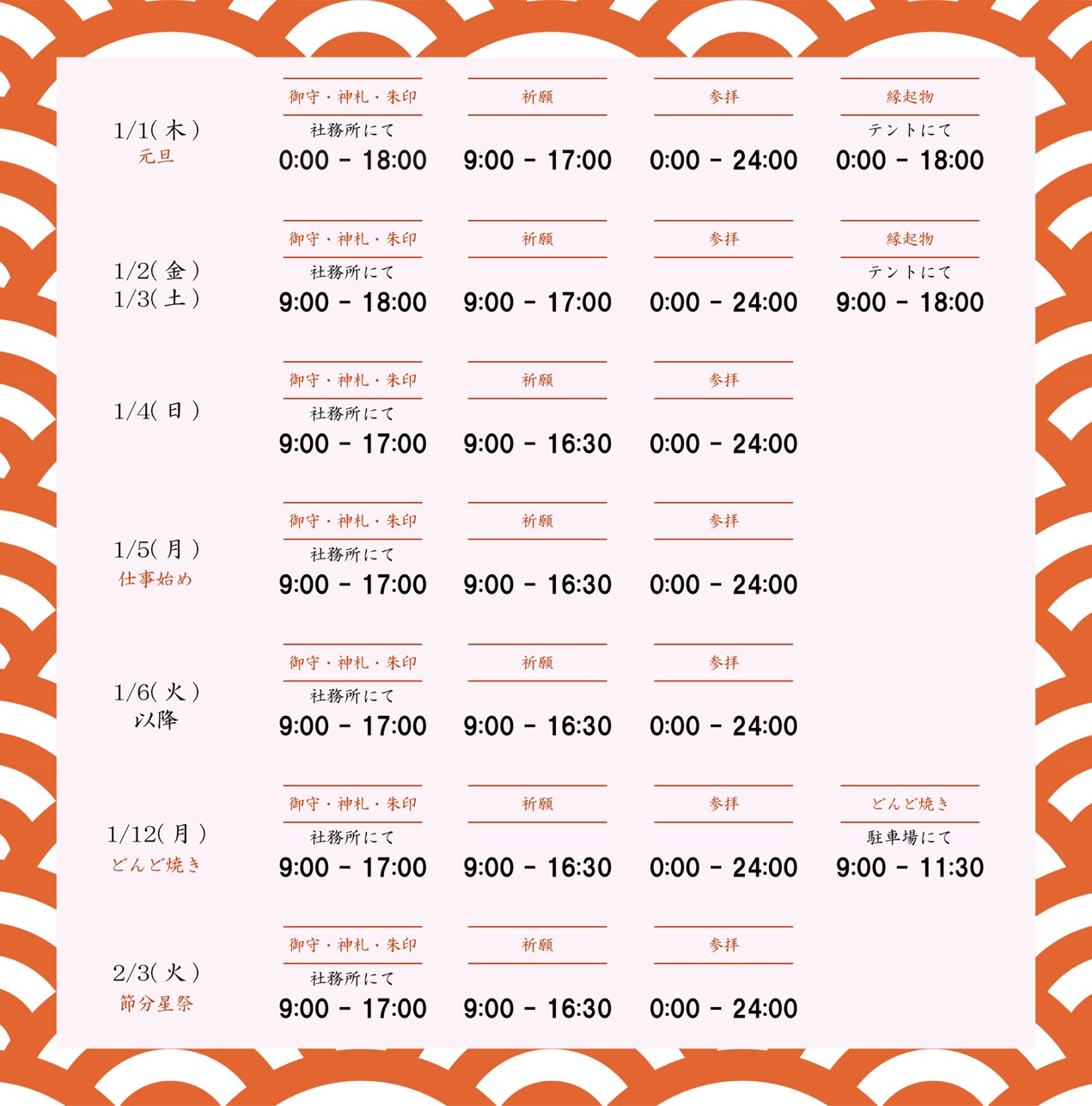 正月三が日は社務所の開所時間が通常と異なっておりますので、お気をつけください。