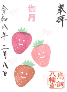 【如月】福マルシェ記念御朱印 2月のデザインは、旬のイチゴです。 バレンタインの時期ですので、ちょこがかかったイチゴや甘そうな真っ赤なイチゴなど 可愛らしい雰囲気のデザインです♪ 期間頒布:2月8日(日)~3月14日(土)まで Share Tweet Hatena Pocket feedly Pin it RSS Categories: お勧め授与品, 御朱印, 授与品初穂料¥800体数 Stock受付中 Categories: お勧め授与品, 御朱印, 授与品