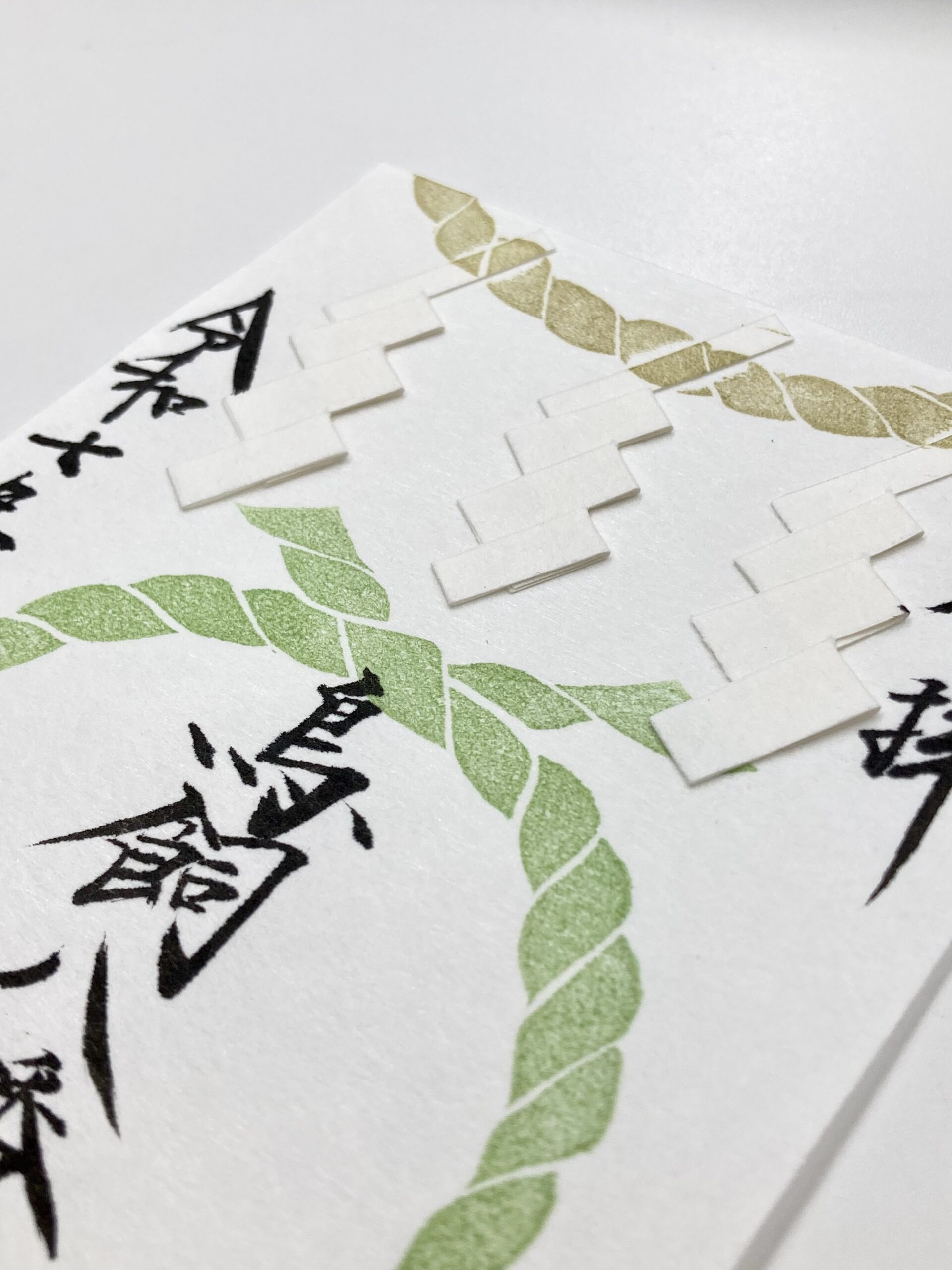 紙垂は御朱印用に一から奉製し手作業で張り付けています。