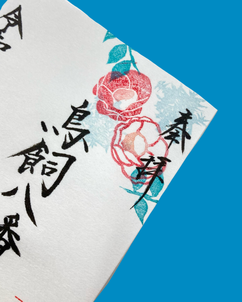 お花は、当宮の境内に実際に咲き誇る山茶花をイメージしております。